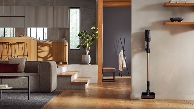 s odpovídajícím nástěnným držákem. Zákazníci mohou přístroj jediným pohybem přeměnit z kompletního vysavače na praktický ruční přístroj: stačí stáhnout posuvný kroužek a během vteřiny uvolnit jednotku PowerUnit, která se skládá z motoru, baterie a prachové nádoby. Drobky na snídaňovém stole nebo pohovce tak rychle vysajete. S nástěnným držákem SpeedLock (v závislosti na modelu) je to ještě snazší: po vytažení jednotky PowerUnit z nástěnného držáku je okamžitě připravena k použití, zatímco sací trubice zůstává v držáku. Pro vysávání se sací trubicí se jednotka vysune z nástěnného držáku dopředu pomocí rukojeti. To znamená, že není třeba přístroj zdlouhavě přestavovat.