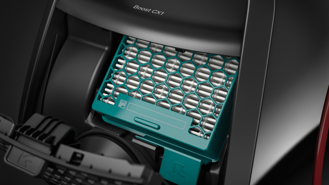Rámeček filtru Hygiene AirClean je u základního modelu vysavače Boost CX1 vyroben ze 100% recyklovaného materiálu. (Foto: Miele)