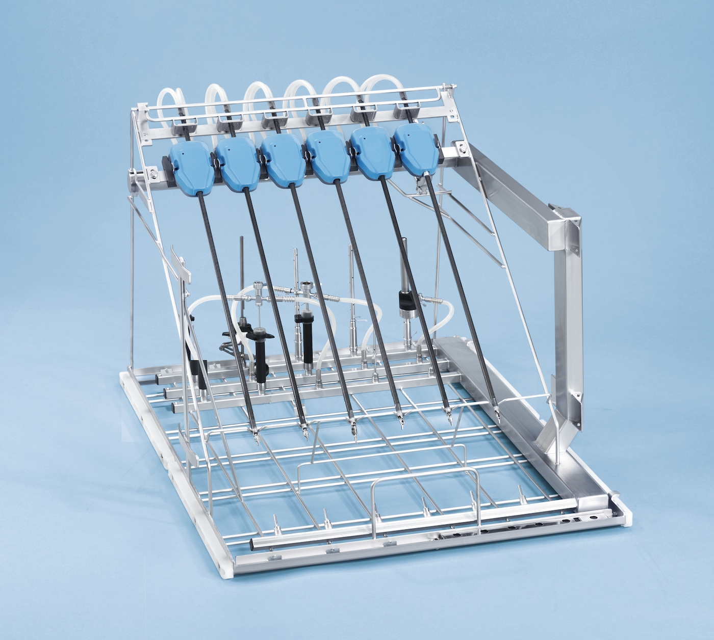 Vozík pro ideální uložení 6 hřídel. instrumentů pro roboticky asistovanou chirurgii.