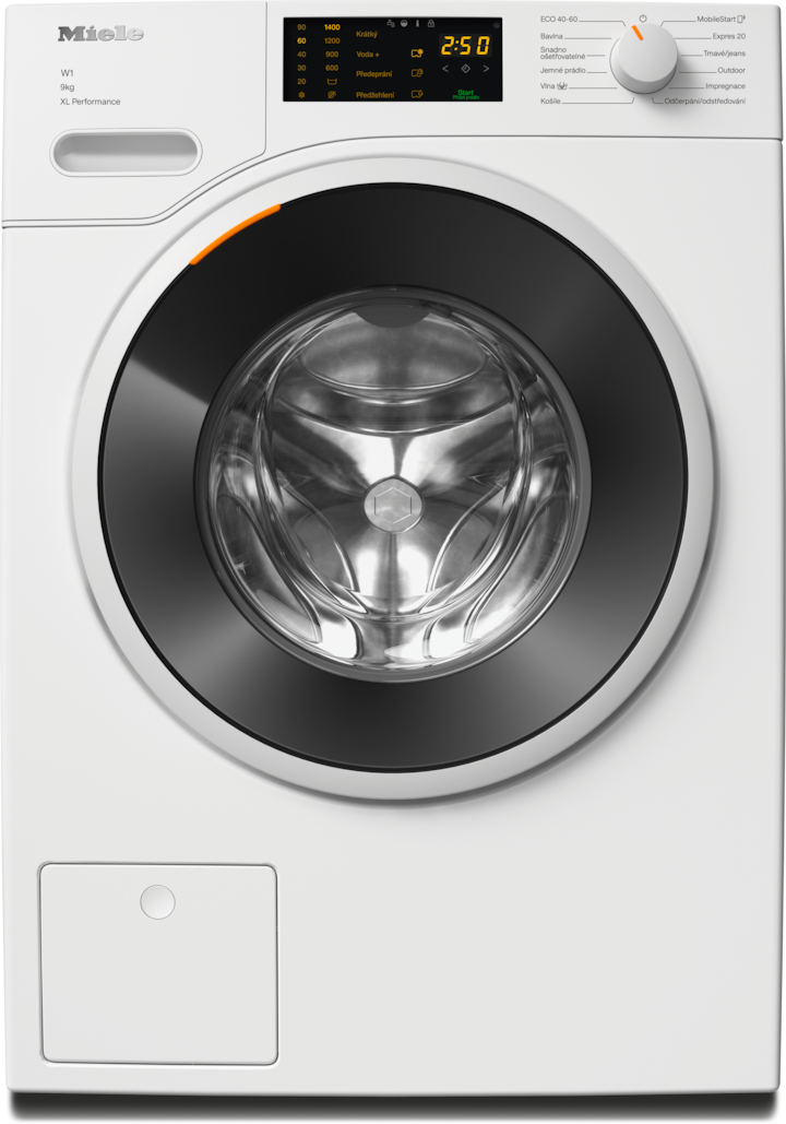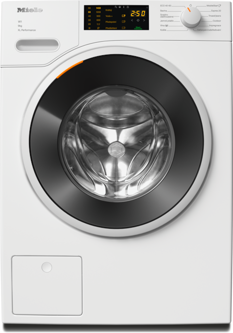 - 6.Během vývojové fáze praček řady W1/W2 testovala společnost Miele modely a základní komponenty v 5 000 náplních prádla (= 5 náplní prádla týdně po dobu 50 týdnů v roce) v různých programech. Více na: miele.com/20years