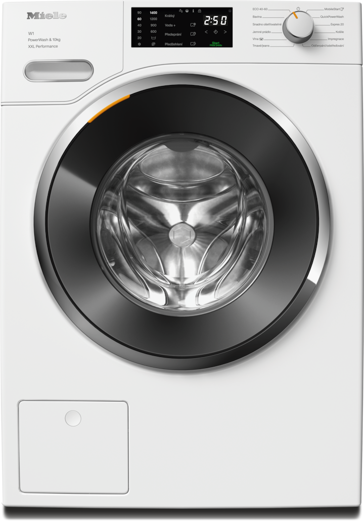 - 7.Během vývojové fáze praček řady W1/W2 testovala společnost Miele modely a základní komponenty v 5 000 náplních prádla (= 5 náplní prádla týdně po dobu 50 týdnů v roce) v různých programech. Více na: miele.com/20years